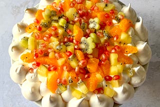 Recette pour les fêtes : pavlova kiwi, clémentines, citron et graines de grenade