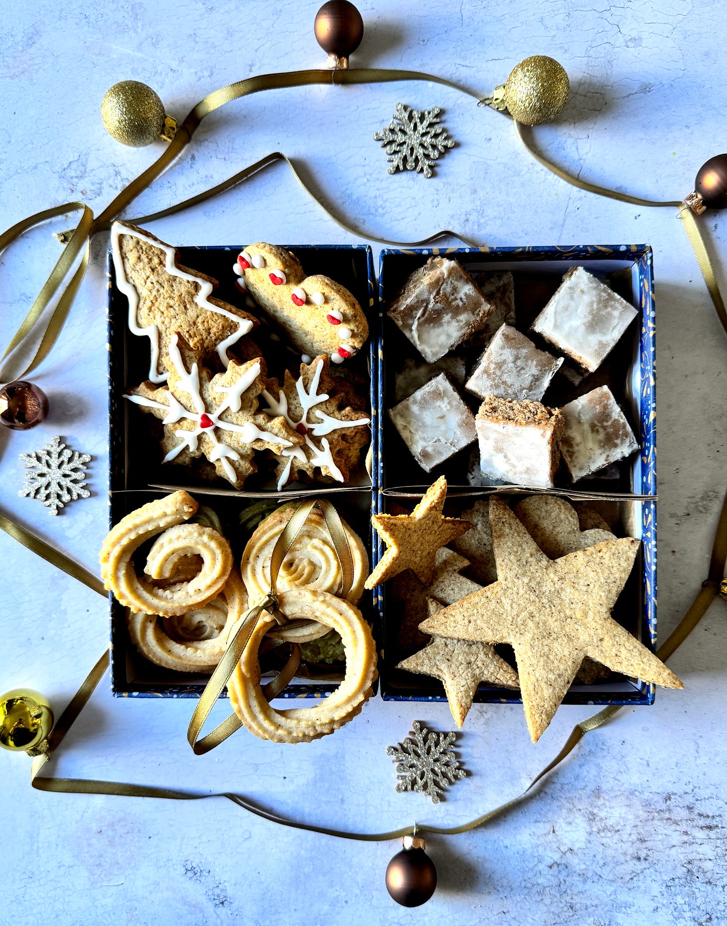 Chez mes parents, quelques semaines avant Noël, la boîte Delacre disparaissait au profit d’une boîte remplie de spritz bredele maison préparés par ma maman alsacienne. Faire des biscuits durant cette période de l’Avent est une tradition très ancrée en Alsace, en Lorraine, mais aussi en Allemagne et dans de nombreux autres pays. Chaque famille prépare différentes variétés de biscuits qui vont remplir des boîtes en métal dans lesquelles on pioche au fil du mois de décembre.