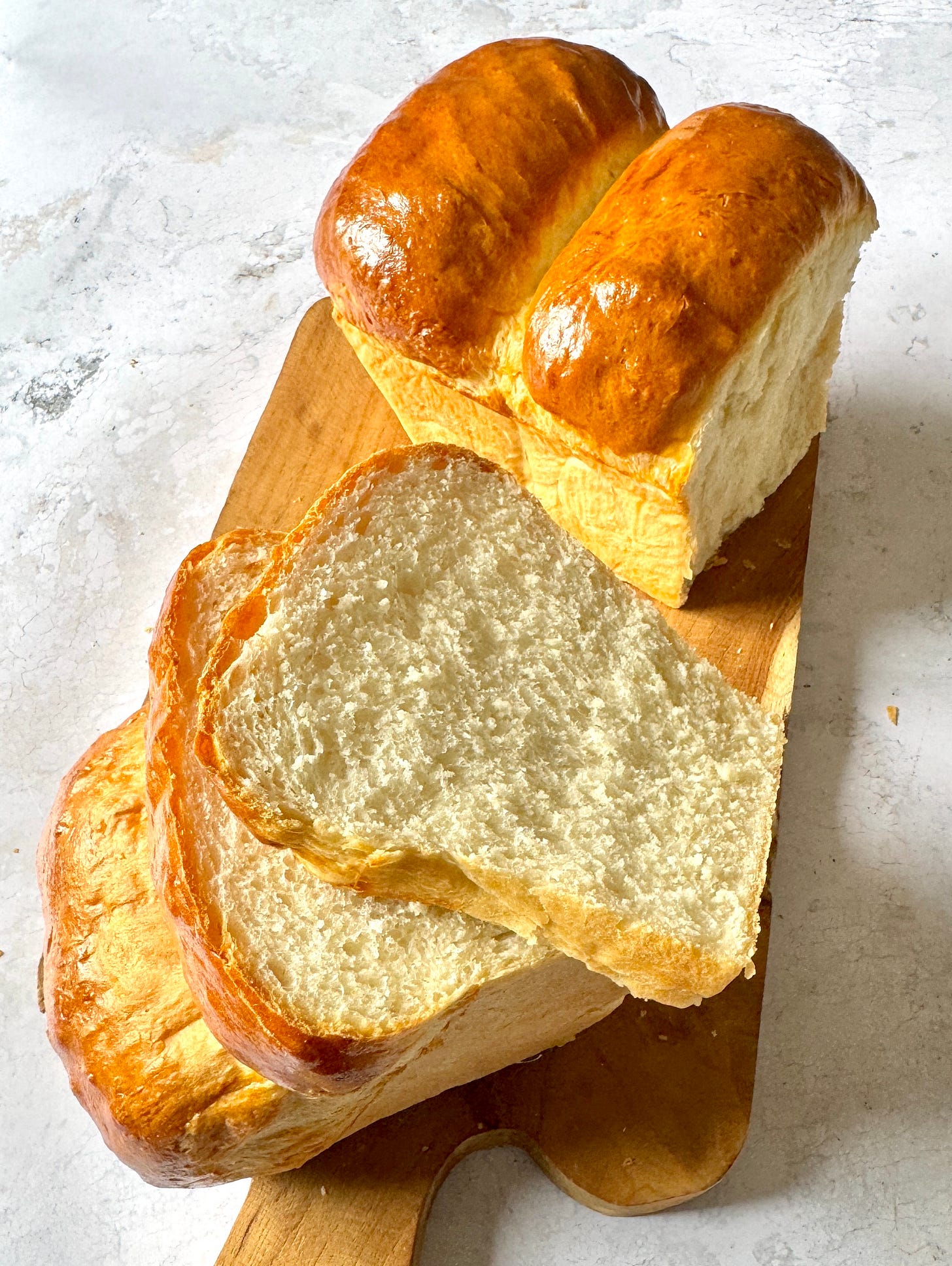 Au fil de mes recherches, j’ai découvert plusieurs recettes pour préparer le pain de mie japonais appelé shokupan. Sa spécificité est justement d’utiliser, en plus des ingrédients traditionnels du pain de mie, un mélange d’eau bouillante et de farine, appelé yudane. C’est ce qui lui donne cette texture si moelleuse, telle que l’on peut la voir dans ma vidéo ci-dessous. On dirait un oreiller en plume.