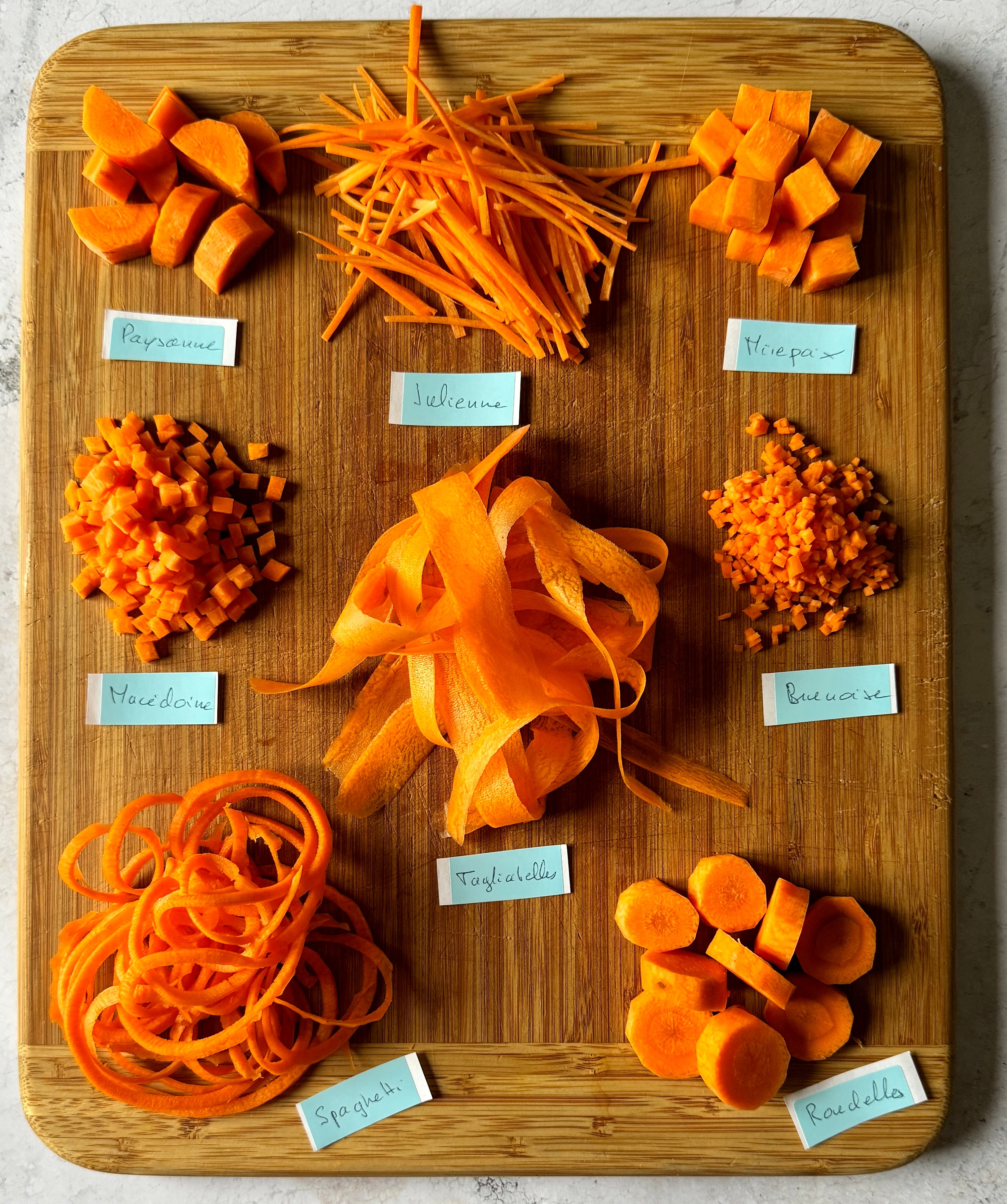 Les différentes découpes de carottes parce que discipline et cuisine font bon ménage